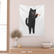 シュールで可愛い猫の笛を吹く様子が可愛いタペストリー。